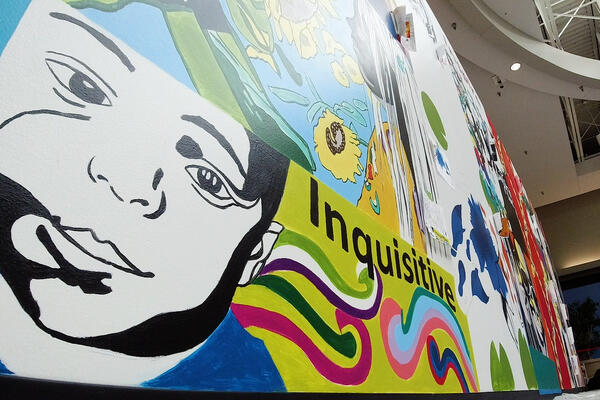 A Wright State alumna worked with youth from Montgomery County’s juvenile justice system to turn a massive blank canvas into a foot-traffic-stopping mural inside the Dayton Mall.